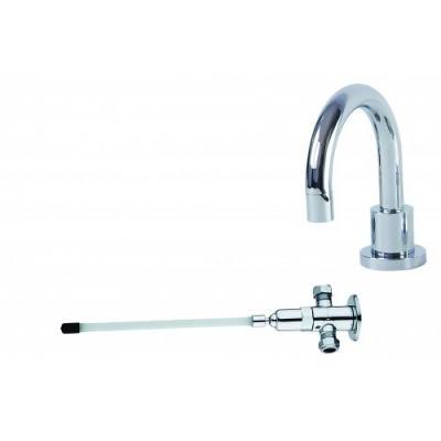 • Modern Knee operated Basin Timer Tapset, single hole mount fixed goose neck spout, luxury chrome finish, complete with 325mm lever and fittings. 6 Star rating.