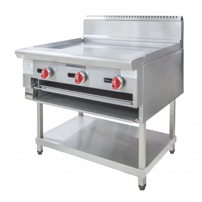 Featuring a highly polished 19mm thick griddle plate over salamander.