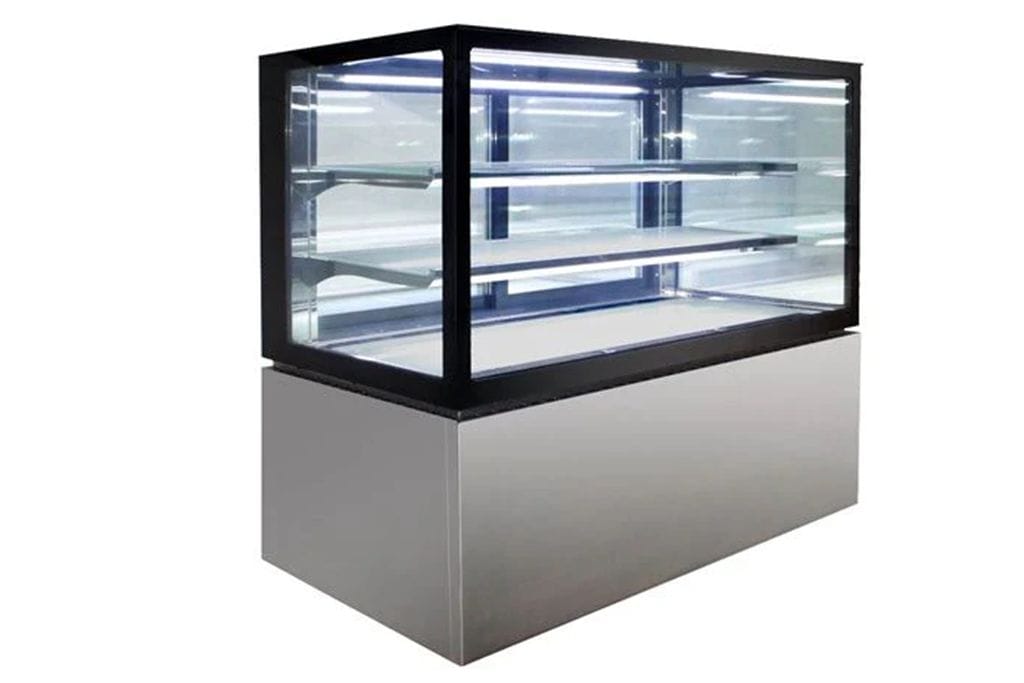 - 2 levels frosted glass shelves with stainless steel base shelf