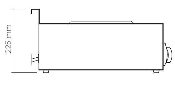 - Rear splash guard prevents blockage of ventilation slots