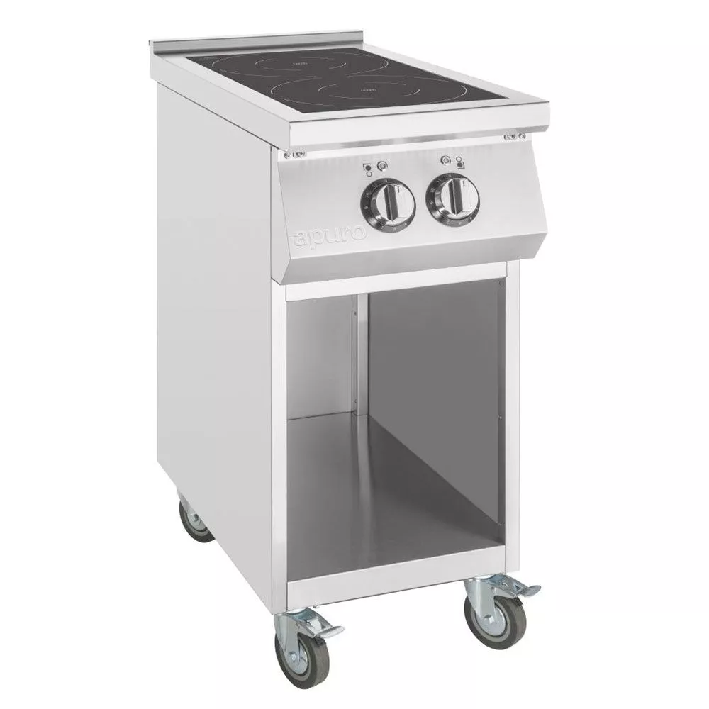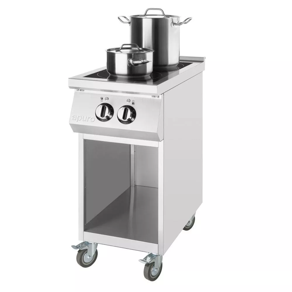 The hob is positioned on a handy open base with castors, providing valuable additional storage and making it easy to move around when required. And thanks to the strong stainless steel construction, the whole unit is easy to clean and maintain.