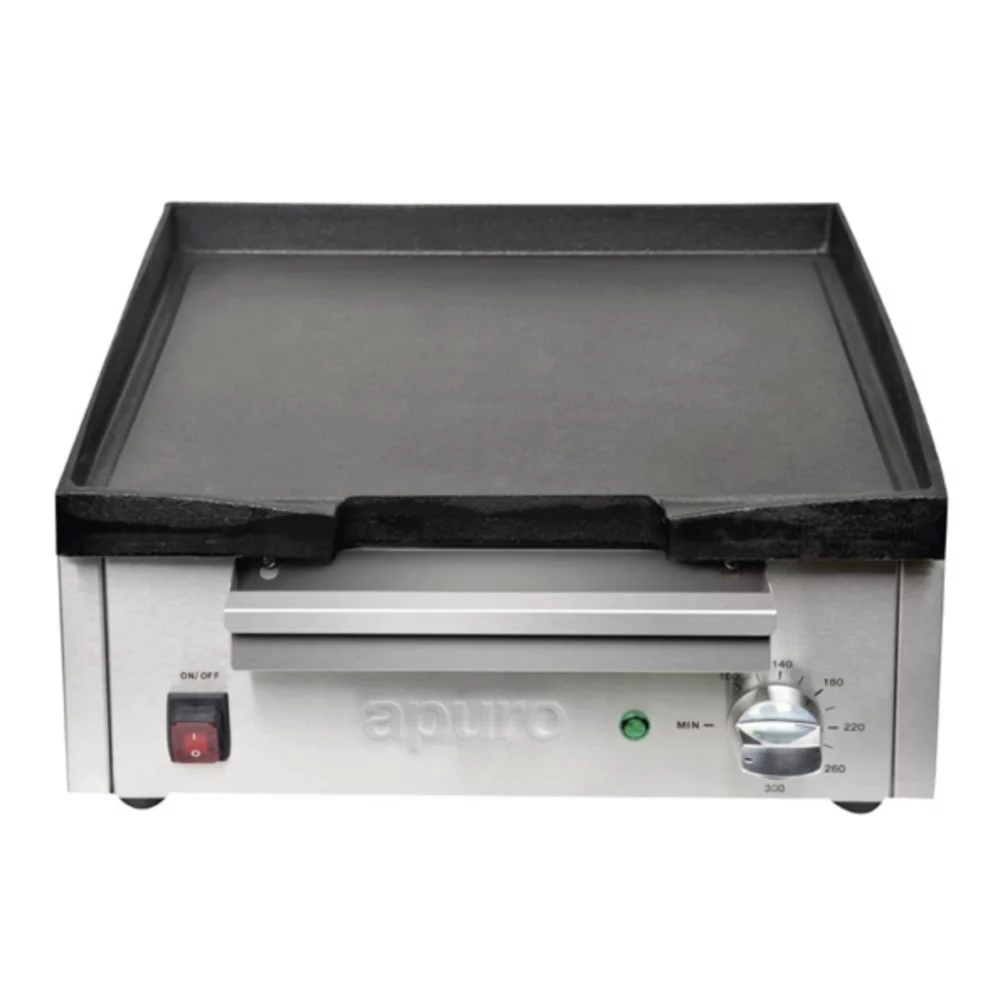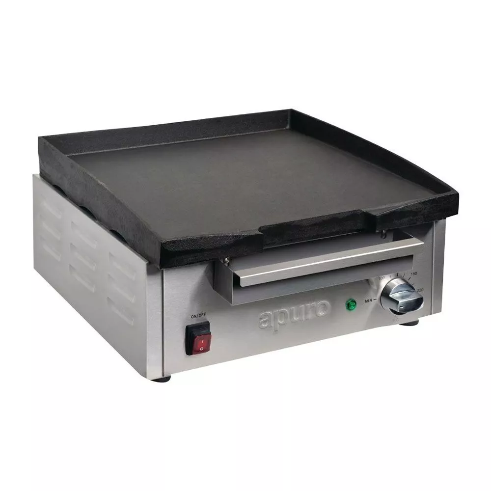 • Heavy-duty cast iron plate conducts heat evenly for ultra-consistent cooking