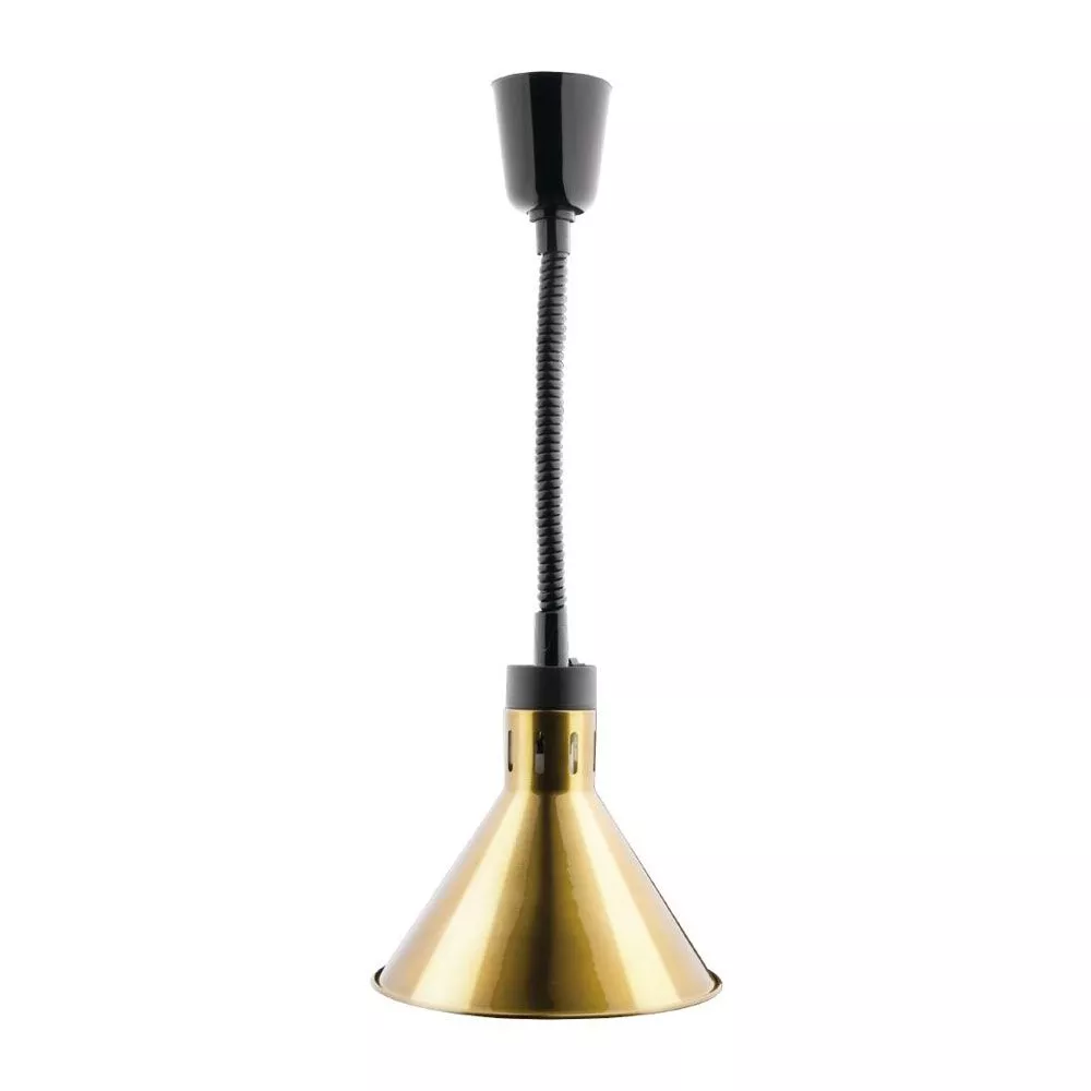 Add some style and sophistication to your hot holding areas by installing this Apuro retractable heat shade. With its contemporary gold finish and durable design, it’s a reliable front-of-house solution for holding hot food, whether on a pass or at a self-service buffet station.