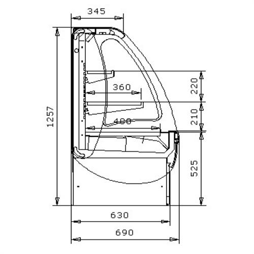 - Front glass H: 220mm (2 rows of shelves 180 & 360mm)
