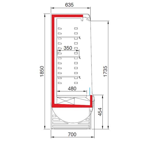 - 3 rows of shelves (350mm) without light