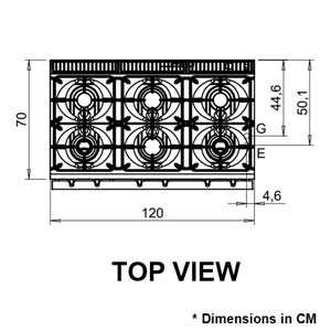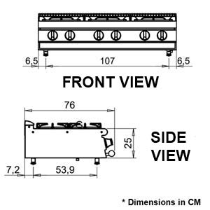 - 6 burner, bench model gas cook top
