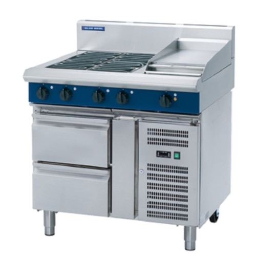 - 4 radiant elements cooktop with 300mm griddle on refrigerated base