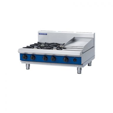 - 4 x 28MJ/hr open burners, 1 x 20MJ/hr griddle burner