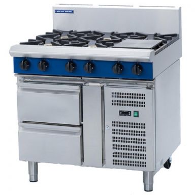 - 6 burners cooktop with 300mm griddle on refrigerated base