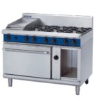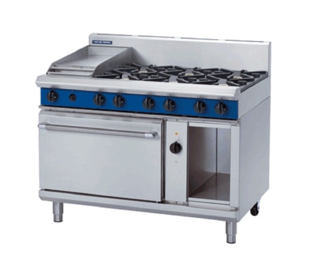 - 6 x 28MJ/hr open burners, 1 x 20MJ/hr griddle burner