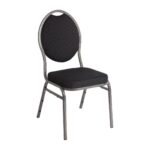 These Oval Back Banquet Chairs are available in a pack of 4 and can be stacked 12 high to help you save storage space. Featuring a high quality steel construction and benefiting from a fire resistant fabric and foam these are an ideal choice of stacking chair for use in any busy foodservice establishment.