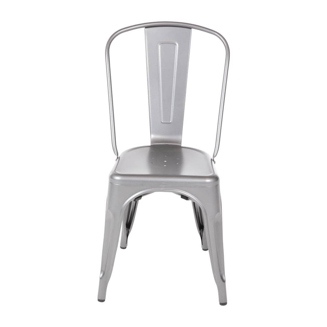 This steel side chair by Bolero brings a modern feel to your table area. The chairs have a wipe clean surface allowing you to quickly and easily clean when needed. Also, the 4 rubber feet prevents the chairs from sliding around, reducing the risk of customers getting injured when seated.