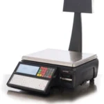 A compact weighing and printing terminal with the integrated vendor and customer displays.