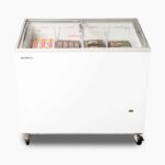 The angle top curved glass chest freezers offer the perfect display for ice cream and frozen food. The curved glass and angel top gives perfect visual display for impulse sales. The sides can be decaled (additional charges apply – POA).