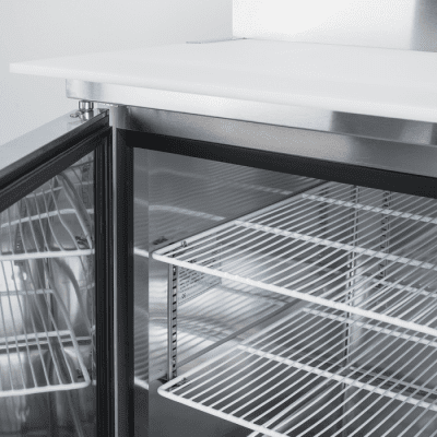 - Chilled, fan assisted, blown air over & under food pan & wells