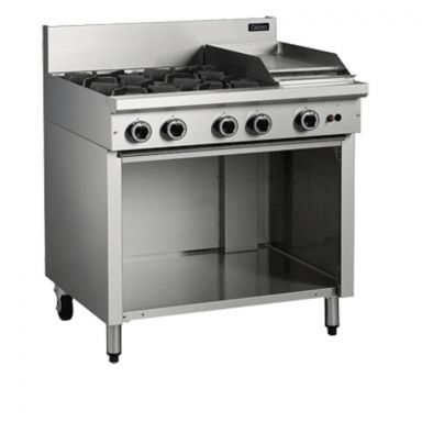 - 4 burner cooktop with 300mm griddle on open cabinet base