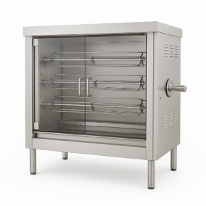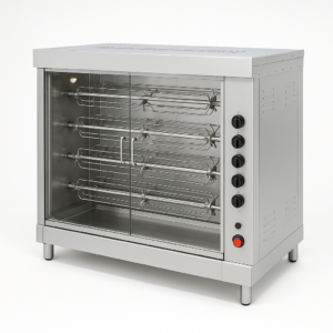 We sell more chicken rotisseries. Call us today and we will assist you in choosing the right rotisserie machines and commercial charcoal chicken machines for your business. See more commercial kitchen equipment. Our high-quality chicken rotisserie cookers are built for delicious roasting. The stainless steel and versatile designs make our line of chicken rotisserie cookers stand out from the crowd. Now you can cook chicken or turkeys without any hassle. Our line of products comes in different capacities and weights, making it easier for you to choose the right chicken rotisserie.If you are running a restaurant, you can choose one of the cookers. Our chicken rotisserie cookers are easily maintainable, that means you do not have to worry about servicing or anything else for a long time. You might also be interested in our outstanding commercial kebab machines.