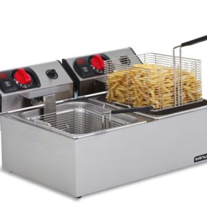 Atlantic Equipment sells quality bench top deep fryers such as Apuro, Roller Grill & F.E.D fryers. You can find more information about our freestand commercial deep fryers prices on our cooking equipment page. Benchtop deep fryers are the ideal appliance to make deliciously crispy fried fish, chicken, doughnuts and more, thanks to their compact design and simple installation. Designed to fit into areas where larger freestanding versions can’t, benchtop deep fryers provide a portable, convenient deep frying solution for professional caterers. Commercial benchtop equipment like deep fryers, commercial coffee machines or commercial meat slicers are available in a huge range of shapes and sizes, including single tank, twin tank and multiple basket configurations. This means that there’s always a suitable deep fryer and commercial salamander whether you’re running a small food truck or a busy takeaway.