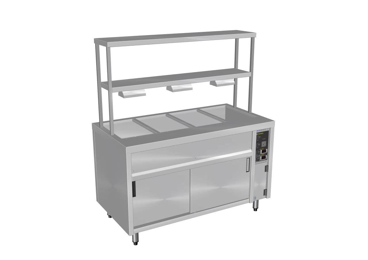 Culinaire Bain Marie Hot Cupboard Island – 2-Tier Gantry – Heat Lamps Bottom Shelf CH.BMH.I.GDB.7