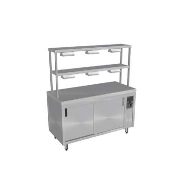 - Unit comes complete with CH.HCP.U hot cupboard plus island bench top and 2 tier overhead heated gantry fully fi tted and wired. Gantry is welded to bench top