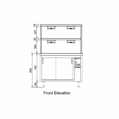- Hot cupboard features a fan forced heating system which offers energy effi ciency, faster heat up times and even heat distribution