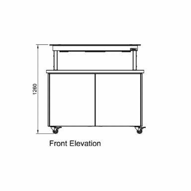 Fitted with 10mm thick toughened glass gantry with overhead Quartz IR heat lamps to provide heat and illumination to the product below