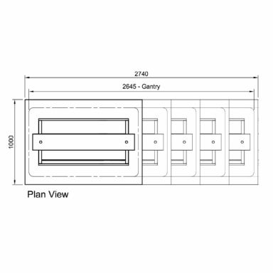 10mm toughened fl at glass gantry fi tted with high impact, low energy L.E.D. lighting