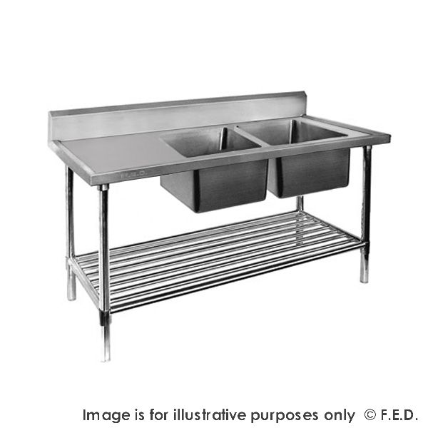 All Stainless DSB6-1500R/A Double Right Sink Bench with Pot Undershelf