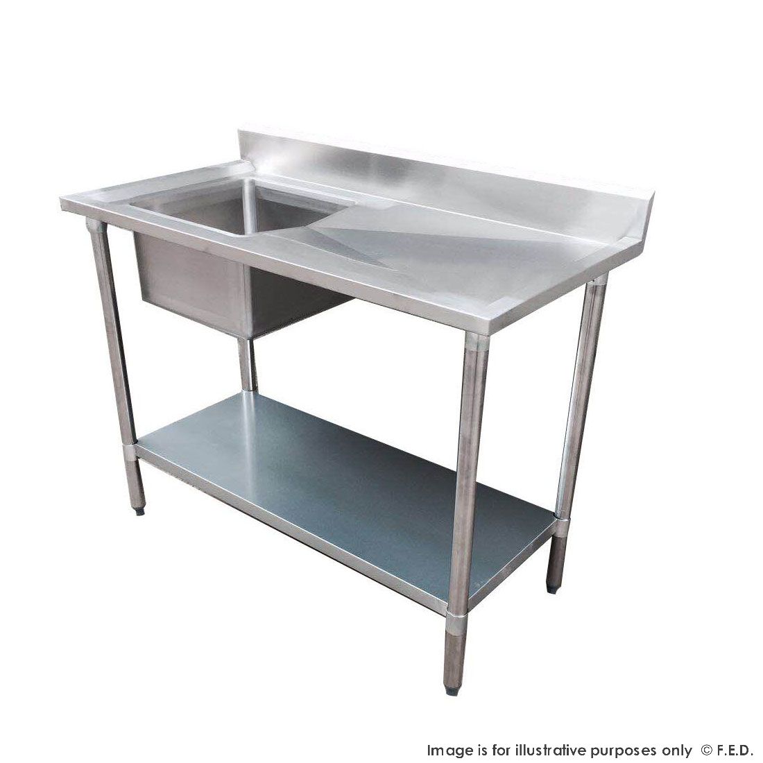 Fantastically priced 600mm deep units with raised lip all around to help prevent spillage and items slipping off and rear splashback which keeps items from falling behind the sink. Angled draining rack ensures water runs back to the sink to drain away, preventing pooling, speeding drying and improving hygiene. Adjustable legs allow stable positioning on uneven surfaces whilst strong undershelf provides vital undersink storage for cleaning equipment and chemicals.
