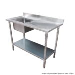 304 Grade Stainless Steel Single Sink Benches with 100 mm Splashback and Undershelf