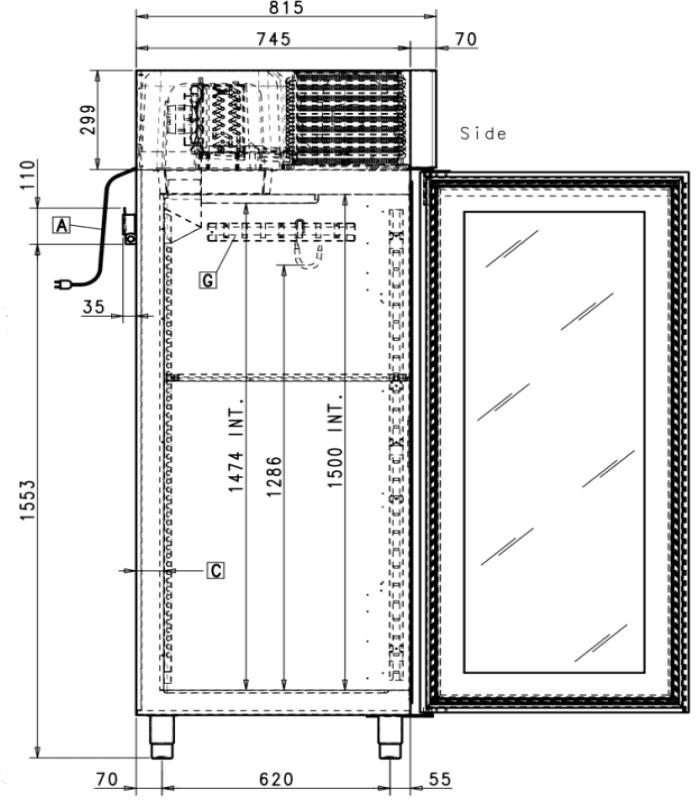 - Supplied with 6 shelves, 1 hook rail and 4 meat hooks