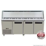 The unit has Frameless glass display area at the front and rear twin sliding doors to allow access from either side, rear PE cutting board is included and the large refrigerated rear storage keeps fresh stock on-hand during busy periods.