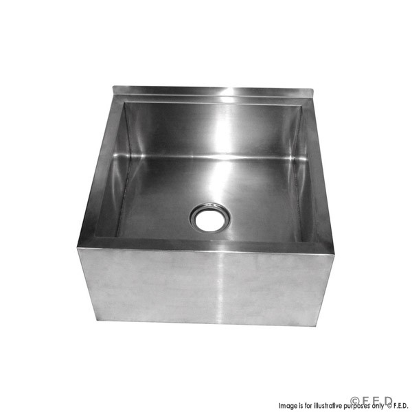 All Stainless Steel Floor Mop Sink570 mm Wide × 570 Deep × 300 High• 1.2mm material; SUS304 (18/8); Hairline finish• bowls are fully welded, polished inside & out• 90 mm Ø drain hole