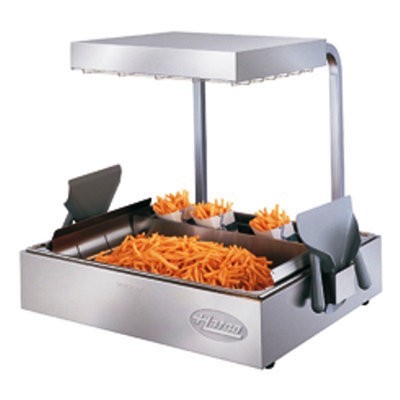 Designed with ample handling spaces between the heat source and the holding areas to empty baskets, Glo-Ray fry holding station maintains “just made” food temperatures. Ceramic elements direct radiant heat from above, while a preset thermostatically controlled heated base maintains uniform holding temperatures from bellow. The slotted holding bin allows the rising heat to envelop the food, preventing soggy product. A sectional divider permits holding of hultiple products simultaneously. – Glo-Ray portable fry station pass through model – dimensions 750 x 580 630mm
