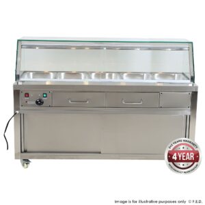 If you’re looking for the perfect warming displays that keep hot foods at preferred serving temperatures for hours for those “show and sell” areas, we have some for you. Our line of warming displays offer the best commercial catering equipment solutions for convenience stores, restaurants and cafés. From burgers and pizzas to sandwiches and snacks, we have warming displays to show the most popular items with suitable commercial sanwich press and commercial pizza ovens. The displays grab the attention of customers by showcasing product, generating interest and sales. See more about displays like our famous bain marie & hot food displays and commercial deli displays,