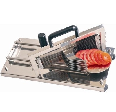 Fast Tomato Slicer – HT-5.5 5.5 mm slice LABOUR SAVING, TIME & SPACE SAVING • the most compact unit available • precise slicing & razor sharp blades • advanced slide and track design minimises alignment issues