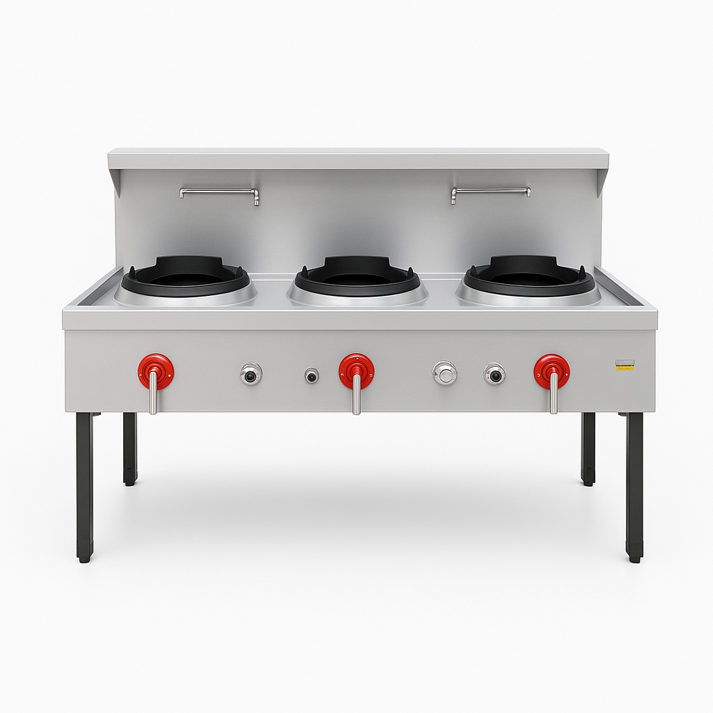 IAPMO GasMark Certified Front gutter design. 14″ cast iron wok ring. Even high heat output. Height adjustable feet. Stainless steel exterior. Removable spillage tray. Condiment shelf on splash back. Modern design ideal for all day boiling. Flame failure & pilot standard with all models. Extra high splash back with swivel laundry arm. Powerful duckbill or chimney jet burner. (Combination burner available on request additional fee applies). Flat front panel for valve control by hand turn or knee push.