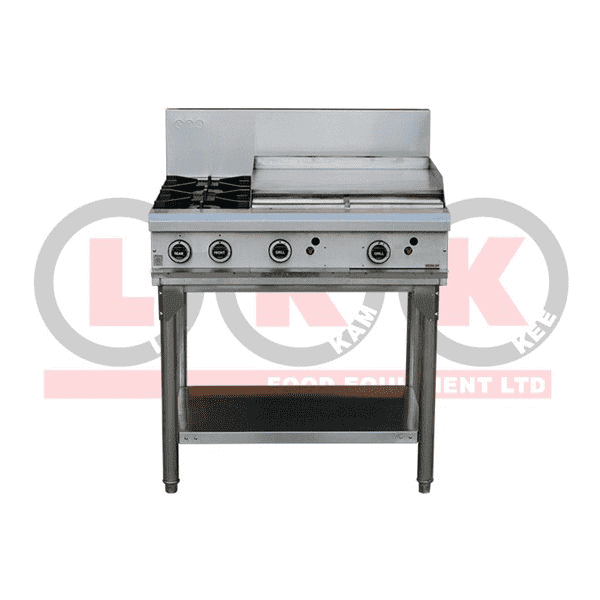 • 2 gas open burner cooktop + 600mm right grill