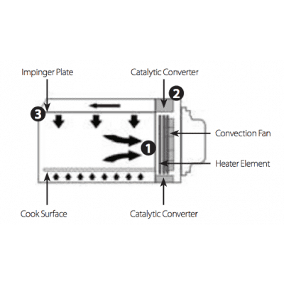 • Accelerated Cooking Technology combines three heat technologies: impingement, microwave and convection heat