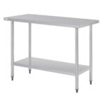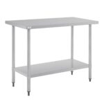 On top, the stainless steel surface is perfect for prepping food. Below, a galvanised steel undershelf provides a solid and dependable platform to store equipment and small appliances. This mixture of durable materials ensure long-lasting use in commercial kitchens – staying in as-new condition for years to come.
