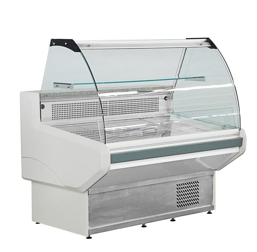 elegant curved glass front for a sophisticated presentation of high end deli products.