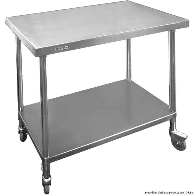 All Stainless Steel Mobile Workbench (no splashback) OPTIONAL DRAWERS AVAILABLE;