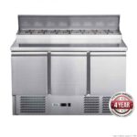 This Salad bar fridge prep is the ideal choice for small and medium businesses that need performance, professional-grade commercial refrigeration. With 3 solid Stainless steel doors, it’s compact in size so you can make the most of your workspace and kitchen.