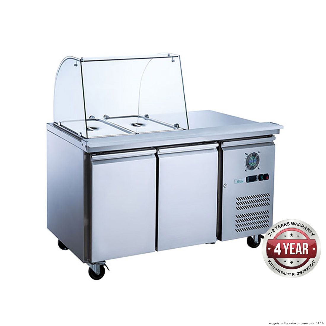 FED-X Two Door Salad Prep Fridge with Curve Glass Top – XTHP2100SALGC