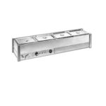 Roband BM14A is Designed to hold food at serving temperature, stainless steel construction, removable cross bars, safety lock ball valve drain, wet or dry operation, Dura-life stainless steel elements, energy regulator control, thermometer display, max pan depth 100mm, trolleys available. Comes with 4 x 1/2 size 100mm deep pans.