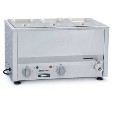 Designed for maximum versatility and performance, the Roband BM2C bain marie conveniently holds food at the perfect serving temperature in a range of configurations to suit all business types.Supplied with three 150mm deep 1/3rd size GN pans.Able to accommodate a range of gastronorms and pots, the BM2C is ideal for mobile catering, events or commercial kitchen use. Made from durable stainless steel, the Roband bain marie is robust as well as easy to use, whether in wet heat or dry heat mode.