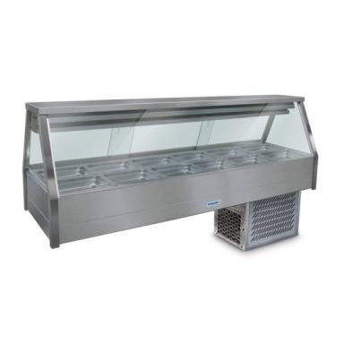These units match the range of “E” series hot food display bars and together they offer the combination of displaying hot and cold foods with uniform, modern appearance. They are designed to take a variety of gastronorm pans up to 65 mm deep. All units combine the use of cold plate and cross fi n coil cooling. Set of 1/2 size 65 mm pans included.
