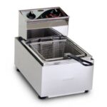 Roband F15 five litre single bench top Deep Fryer cooks 6.5kg/hr of frozen chips and 7kg/hr of thawed chips. 1 kg chip basket size. Stainless steel construction with precise thermostatic control. Swing back element and easily removable tank. Maximum and minimum oil level markers for ease of use. The insulated basket handle and safety over-temp cut-out means the Deep Fryer is very safe to use.
