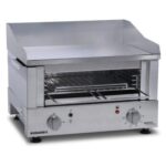 The perfect combination machine to produce a great top toasting result, whilst precisely cooking your steaks, eggs, bacon or hamburgers. 6 mm thick steel cooking plate, independent control of toasting and cooking functions, compacted cooking plate elements with superior clamping for fast temperature recovery and reliable temperature control, forward positioned grease gutter and integrated, side positioned grease collection box which is easily removable for cleaning, removable crumb tray, wire rack with bun stop. Featuring a thermostatic dial for the griddle plate, the unit gives you complete control when cooking; enabling more precise performance to ensure your food is always cooked to perfection. Crafted from premium stainless steel, the unit is also exceptionally durable and robust, guaranteeing a long-lasting life in even the busiest of commercial kitchens.