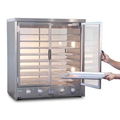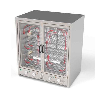 The H200R Heat ‘n’ Hold Food Warmer represents the forefront of food display warming, intricately engineered to uphold the ideal serving temperature for your culinary masterpieces inside its cabinet, ensuring both an enticing visual appeal and scrumptious flavor. Harnessing the power of its dual elements and dual fans, this groundbreaking appliance achieves precise temperature control and a consistent warmth that not only enhances customer satisfaction but also prolongs the longevity of your delectable offerings. Furthermore, the Heat ‘n’ Hold features a practical “Pre-Heat” function, streamlining cabinet preheating without compromising your product’s quality, proving invaluable during peak hours with frequent door access. It comes as a standard package with eight 737mm bakers trays, with each rack accommodating two Gastronorm pans, allowing for versatile presentation of a wide range of culinary creations. Ideally suited for pies, pastries, pretzels, succulent chickens, and various other hot food products, the Heat ‘n’ Hold sets an impressive benchmark in food warming technology.